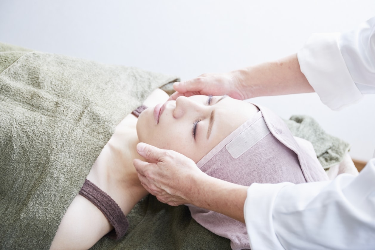 【実技】お肌のタッチアップ、フェイシャルマッサージにてリラクゼーションへの導き、リンパドレナージュによるむくみの解消など